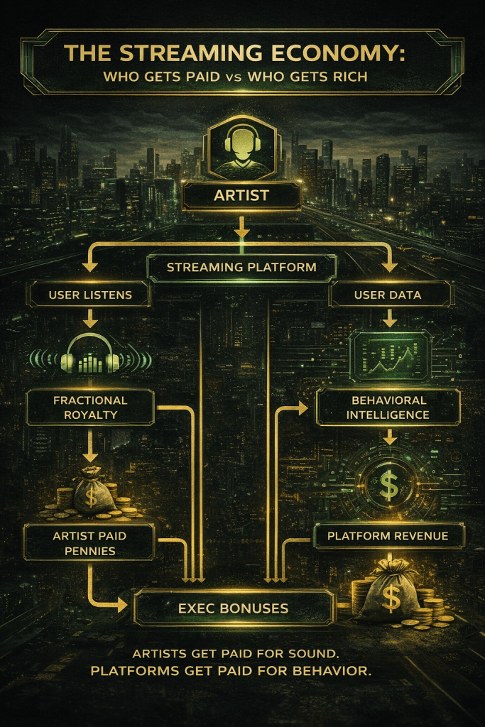 Streaming platforms and labels are pulling nearly $4 billion a year from data-driven advertising, behavioral analytics, and algorithm licensing. CEOs walk away with hundreds of millions in bonuses.